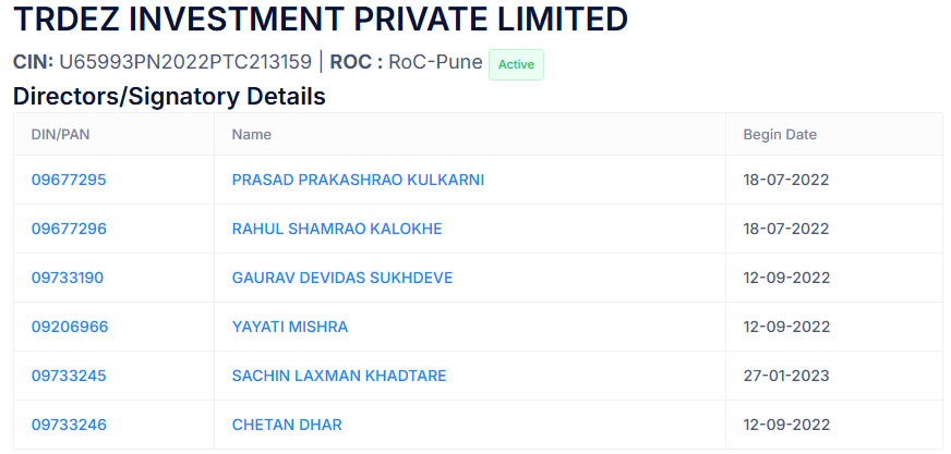 One of the most deceptive tactics was the use of TRDEZ Investment India Pvt. Ltd., a SEBI-registered brokerage house. His brother Yayati Mishra, Rahul Kalokhe, Gaurav Sukhdeve reportedly listed as a directors here, enabling the scam to appear credible even though Infinite Beacon itself was not registered or regulated.